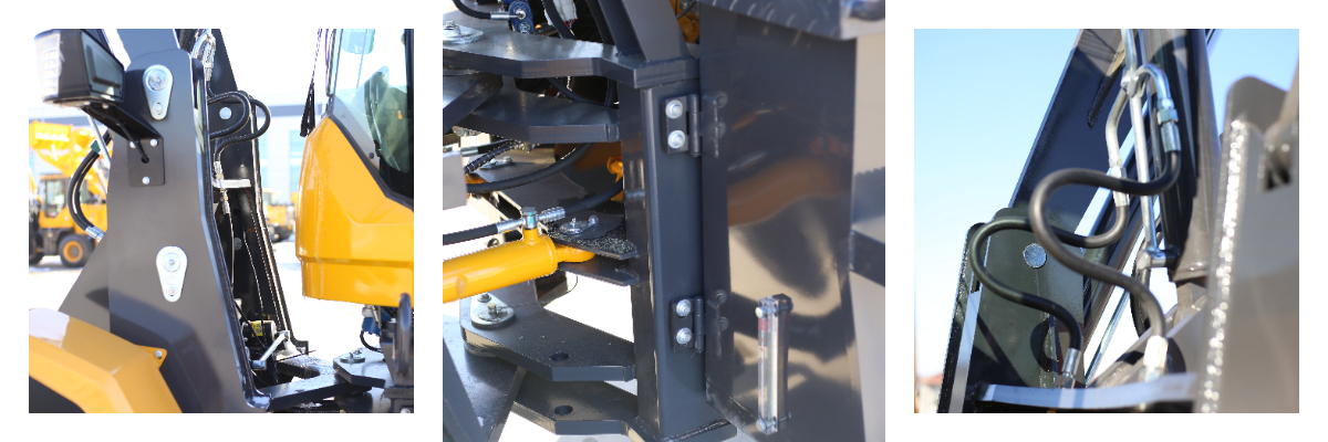 El cucharón tiene una capacidad de 1 m³ (2000 mm de ancho) y una capacidad de carga nominal de 2000 kg. La altura de descarga alcanza los 3500 mm y puede elevarse a 4,2, 4,5 o 4,8 metros según sea necesario, con una distancia de descarga de ≥1000 mm, satisfaciendo así diversas necesidades de carga y descarga.